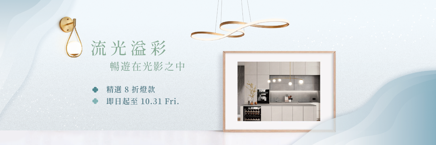 【本季精選燈款】限時優惠,燈具全面 8 折。(活動商品不參與全館滿額折扣)