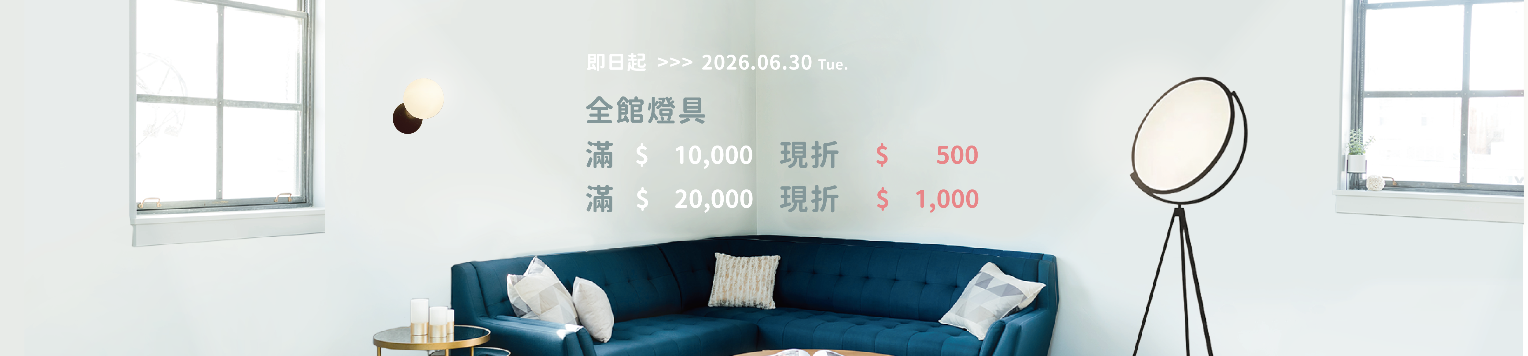 燈具滿 $10,000 元,現折 $ 500 元