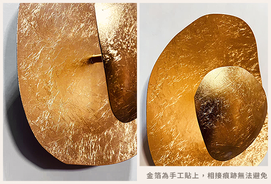 金箔皆為手工貼上,會有些許片與片之接縫不屬於瑕疵