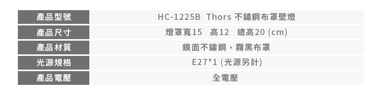 Thors 不鏽鋼布罩壁燈